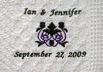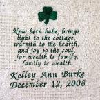 | Celtic Crests offers these 100% Cotton Irish, Scottish or Celtic New Baby Throws, beautifully Embroidered and Personalized with the Claddagh or Celtic Knot or Thistle or Shamrock and Verse with names and dates. |