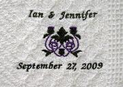 | Celtic Crests offers these 100% Cotton Irish, Scottish and Celtic Wedding Throws, beautifully Embroidered and Personalized with the Claddagh or Celtic Knot or Thistle or Coat of Arms or the Wedding Blessing. |